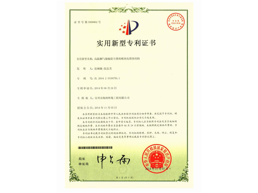 Patent certificate 1